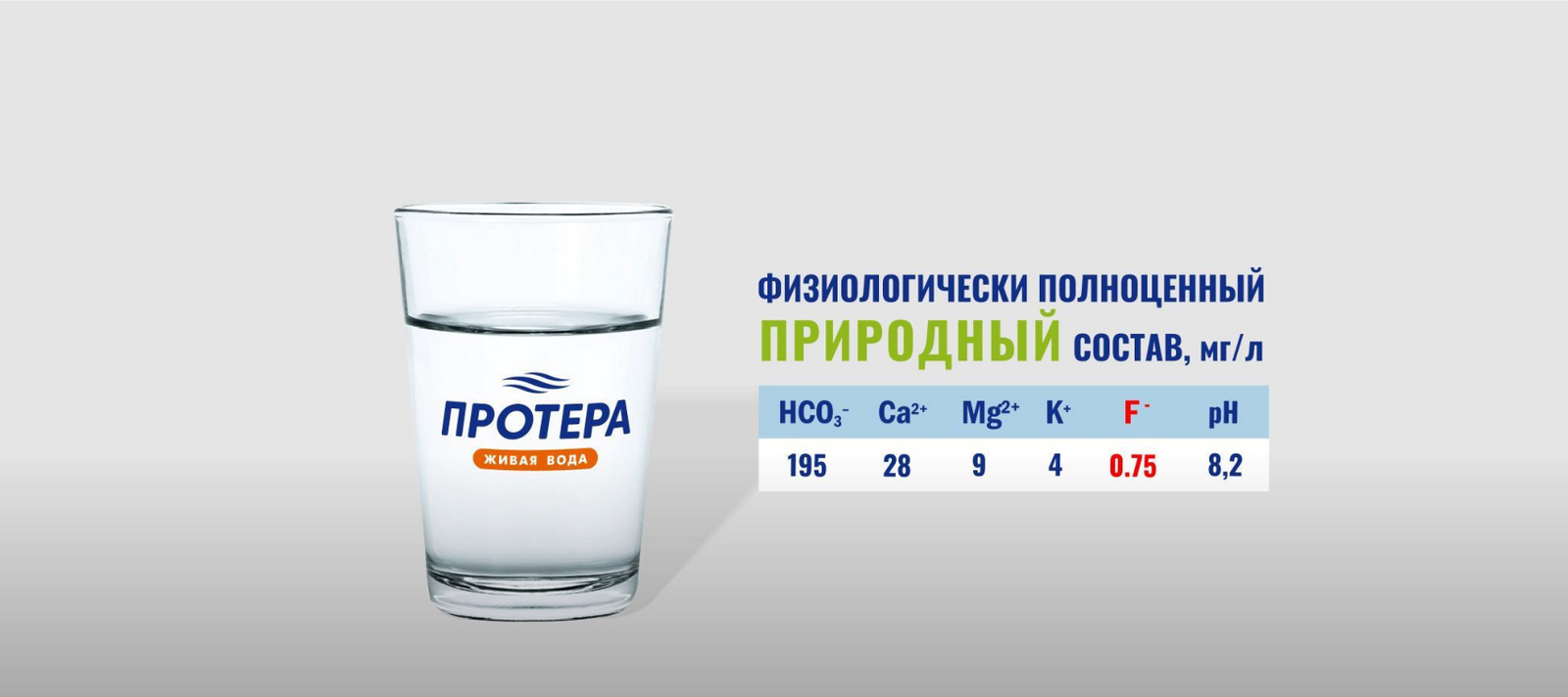Физиологически полноценная питьевая вода. Природный баланс полезных минералов. Содержит фтор для здоровья зубов.